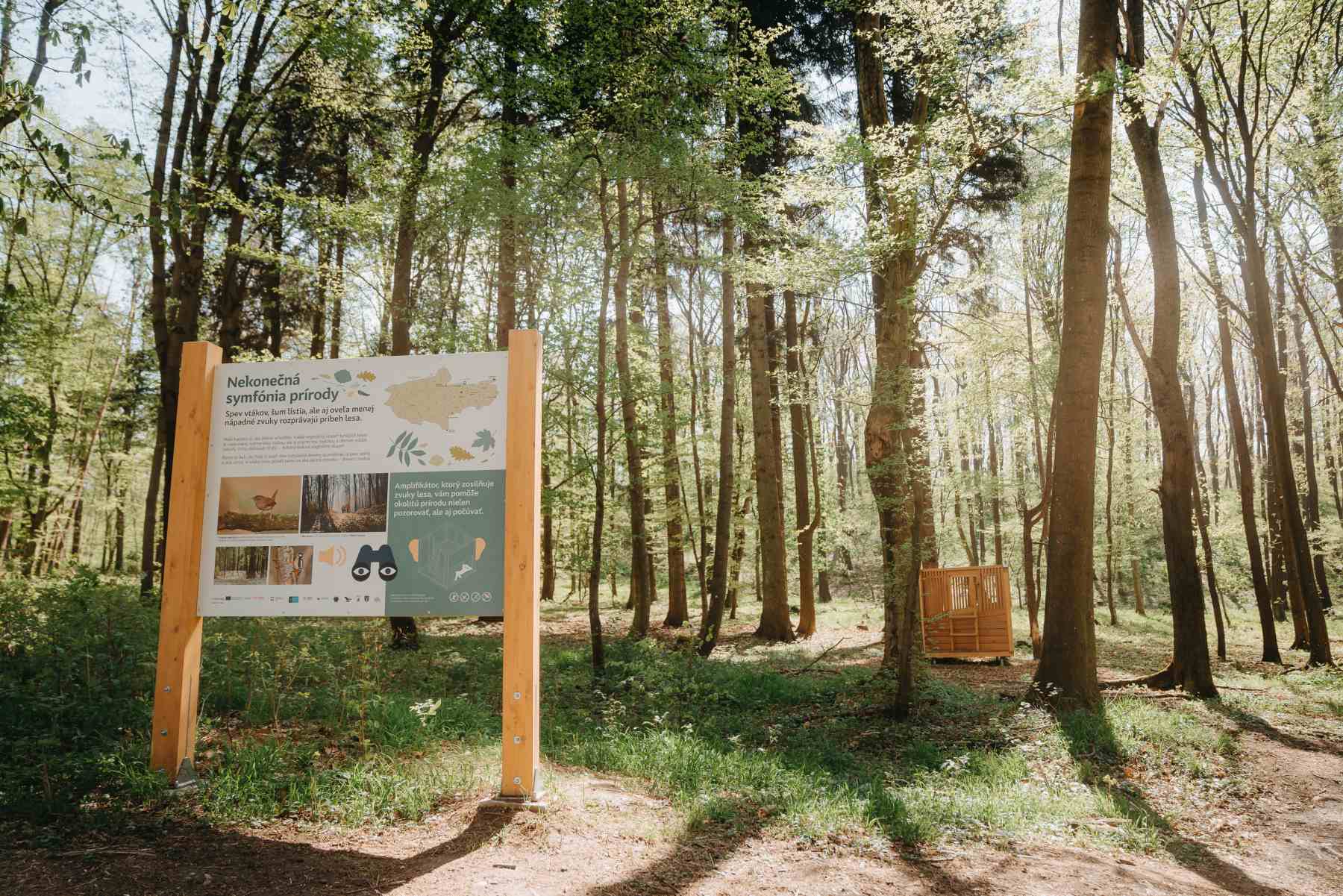 V lokalite Vlčiareň spoznáte cestu vody krasovým územím a oddýchnete si na plošine inšpirovanej krútňavovými hrncami. Na ďalšej zastávke nájdete prvok, ktorý zosilňuje zvuky lesa a umožní vám počuť prírodu trochu inak, než ste zvyknutí.