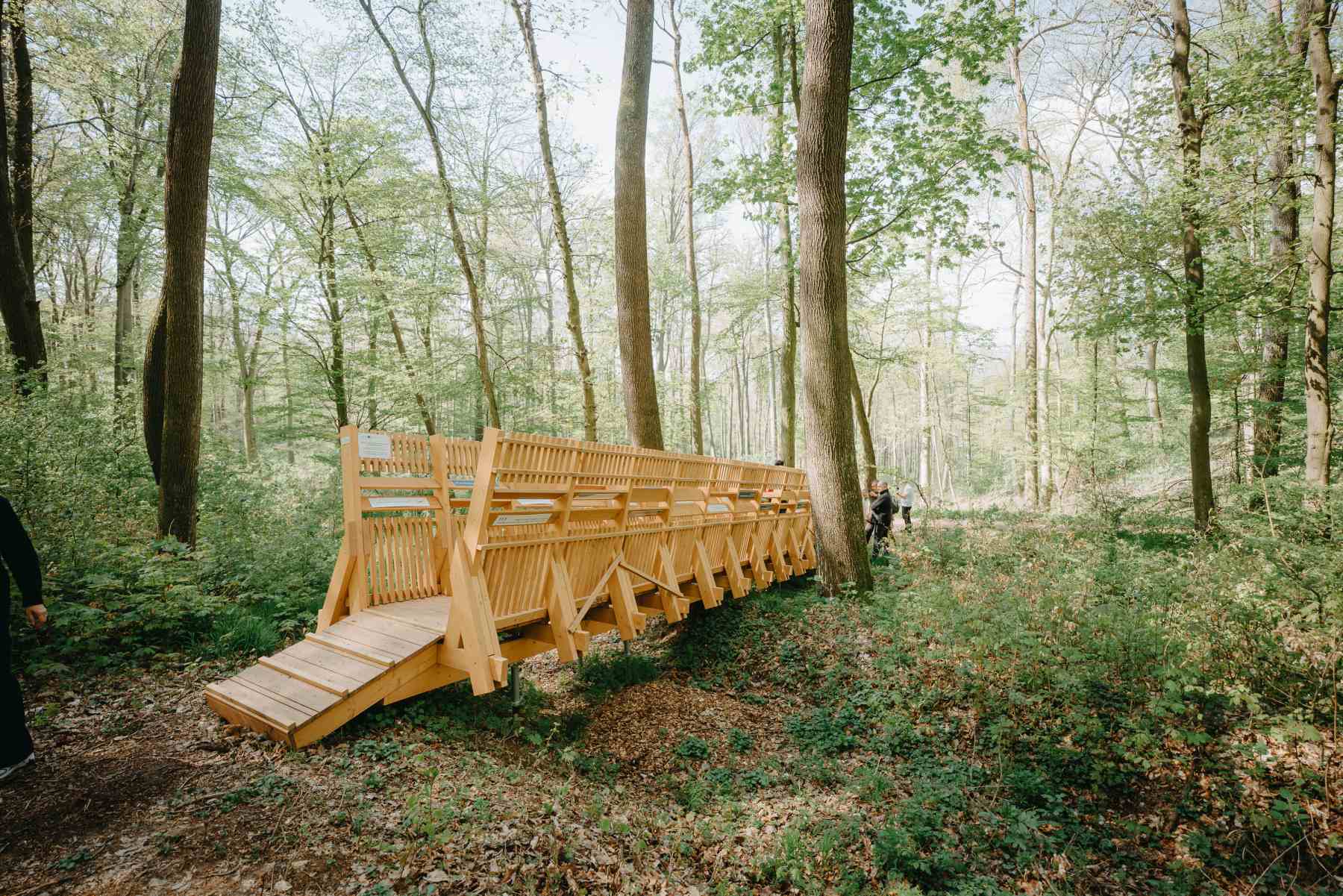Jednotlivé herné prvky sú rozmiestnené pozdĺž chodníka a každý z nich ponúka iný zážitok. Pri jednom z nich sa prejdete po „klávesoch“ a započúvate sa do zvukov lesa a vody. Ďalší vás prevedie medzi drevenými stĺpmi, ktoré pripomínajú jaskynnú výzdobu – deti si tu vyskúšajú, aké to je sa „predierať“ medzi stalaktitmi a stalagmitmi.