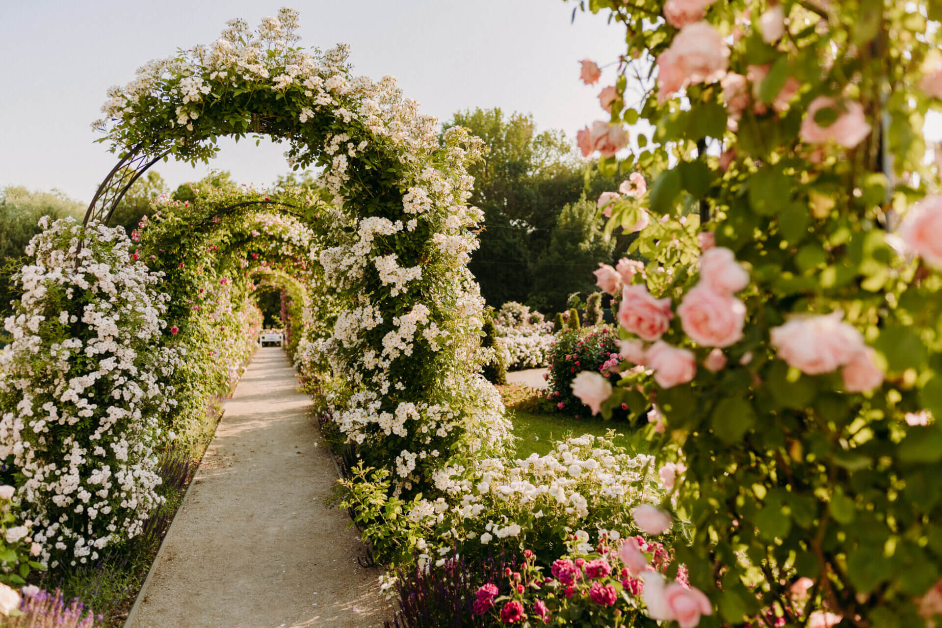 „Poďte, niečo vám ukážem,“ pozýva nás pán Kudláč hore priestranným skleneným schodiskom, ktoré sa obtáča okolo obrovskej medovej kvapky. Je fascinujúce, že mysleli skutočne aj na ten najmenší detail. Naše ďalšie kroky smerujú na terasu Villy Apimed, odkiaľ nám náš hostiteľ ukazuje romantickú ružovú záhradu, ktorú obnovili na počesť grófky Márie Henriety Chotekovej.